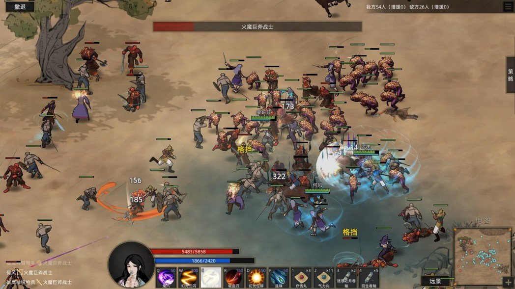 戰鬥的方式很「LOL」,技能有Q、W、E、R、D、F等,數字鍵也有1~4可以放置技能,加起來都有十個了,但真的用的到這麼多XD,技能除了傷害外,有些還有附帶定身、恐懼、昏迷等,還有位移技能像衝鋒、加速,更不用說補血或是效果卷軸這種道具了,欄位不夠放的。